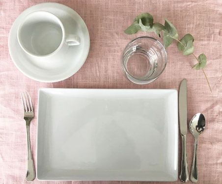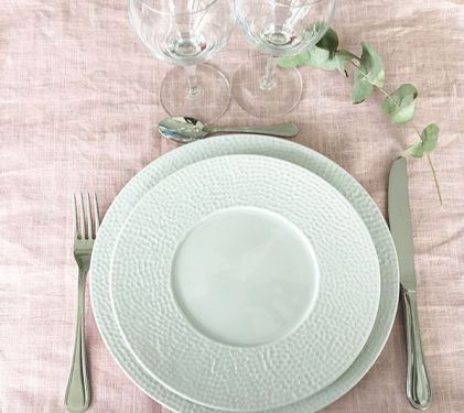 Formule vaisselle blanche et simple qui laisse la place à votre décoration : 11 pièces par personnes.